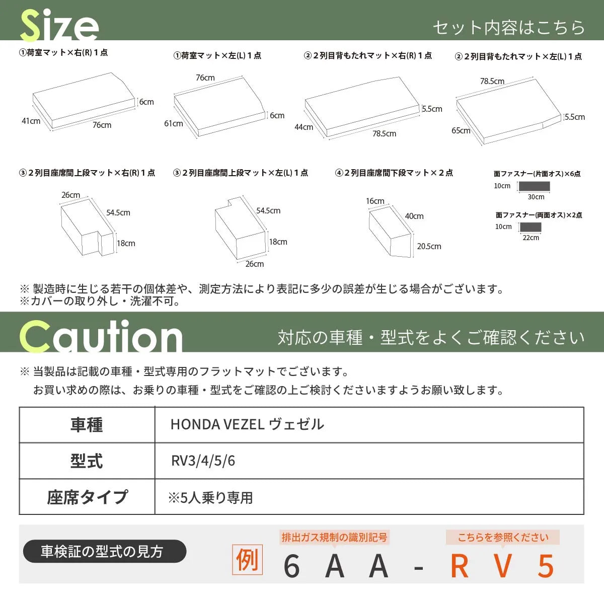 注意事項 ホンダ ヴェゼル RV3/4/5/6 5人乗り専用です。